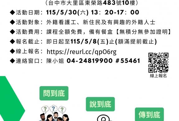 本次課程使多元族群跨越文化以及語言的藩籬,更多了解照護過程中病人安全的重要性,以建構友善安全的醫療工作環境,也增加多元...