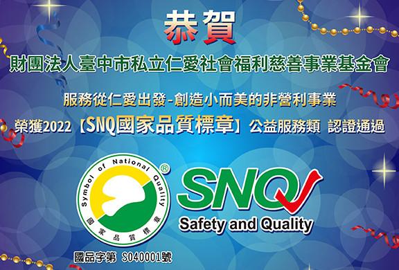 恭賀本會🎉【服務從仁愛出發❤️創造小而美的非營利事業】榮獲第25屆🔹SNQ國家品質標章🔹公益服務類 認證通過!