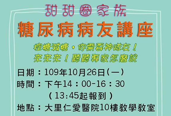 甜甜圈家族-糖尿病病友講座 🔸控糖減糖,你需要神隊友! 🔸來來來!聽聽專家怎麼說 🍩活動主題 1.「輕鬆控糖」 糖尿病科 謝...