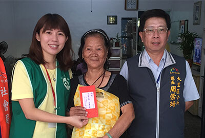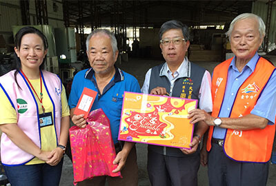 本會自99年起每年與大里區公所合作辦理歲末及中秋關懷獨居長者活動,由本會工作人員偕同大里區獨居老人志工隊至弱勢長輩家訪視,提供長者年節禮金及物資,讓獨居長者感受到社會的溫暖與關懷。