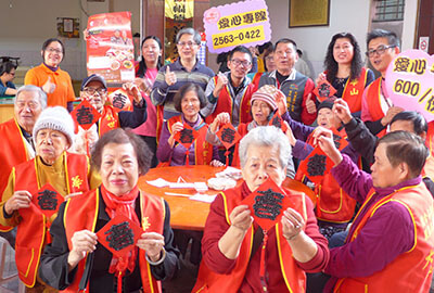本會於104年起每年與華山基金會大里及霧峰天使站合作辦理「愛老人年菜團圓」活動,為在地長者提供持續性關懷。自106年起更邀請仁愛醫療財團法人員工共襄盛舉,服務範圍擴及大里、霧峰、太平、烏日及中西區等地,讓社區長者可以安心過好年,感受到社會的溫暖。